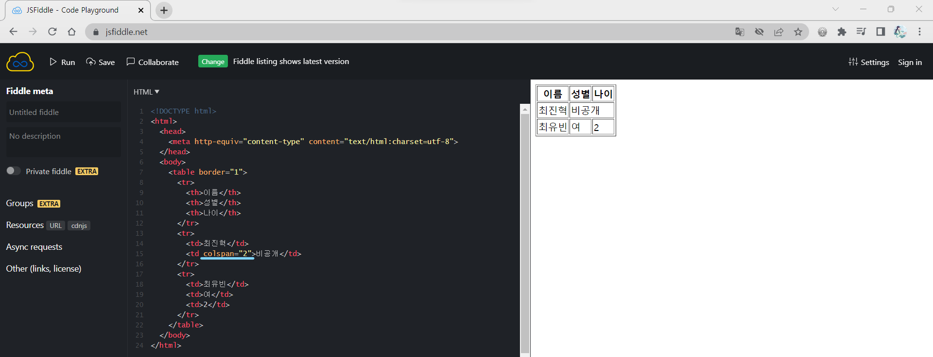 n개의 열이 하나의 박스로 통합되었다. = colspan 속성을 사용했다.