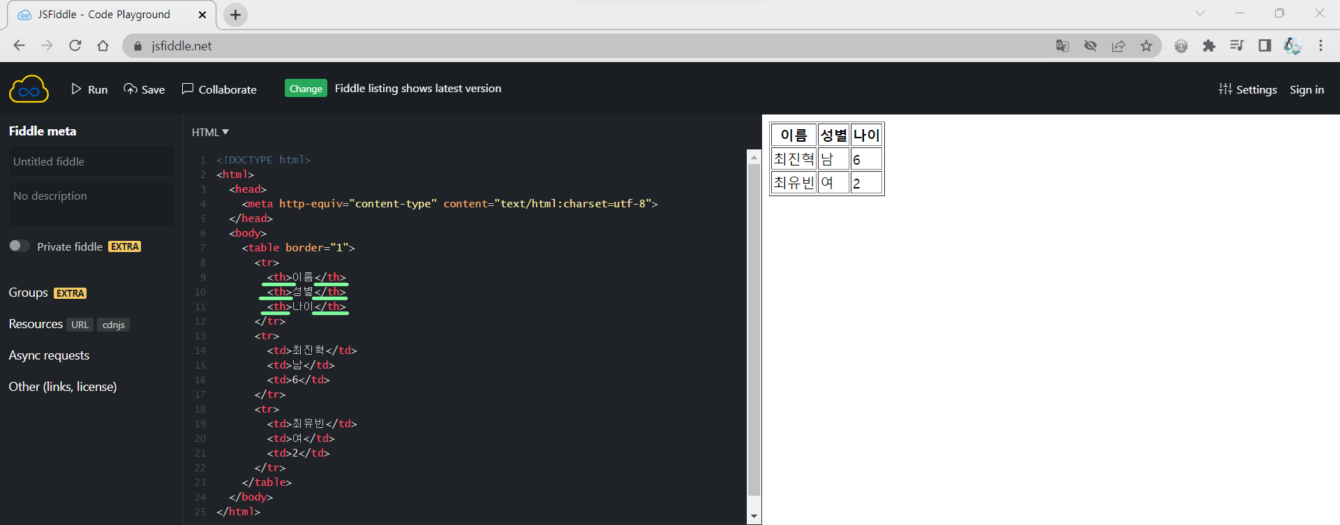 이렇게, 모든 표는 <table>로 시작해서 </table>로 끝난다.