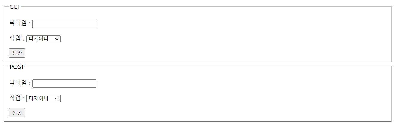 <fieldset>이 GET이라는 상자와 POST라는 상자로 묶인 그룹을 의미한다.