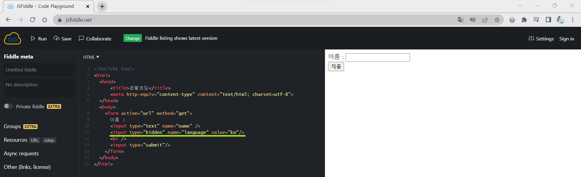 서버로 전송되는 데이터는 ①이름과 ②사용 언어인 것인데,