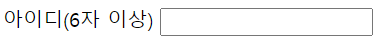 | <label> | - 입력란과 text를 묶어줌. ex, <label>아이디(6자 이상)<input type="text"></label> ex, <label for="user-id">아이디(6자 이상)</label> <input type="text" id="user-id"> |